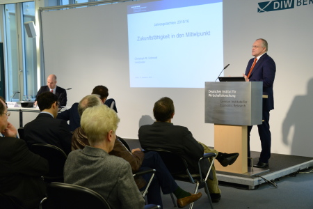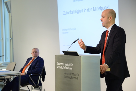 Wie können wir unseren Wohlstand nicht nur kurzfristig verwalten, sondern langfristig sichern? Diese Frage steht im Mittelpunkt des aktuellen Jahresgutachtens des Sachverständigenrats zur Begutachtung der gesamtwirtschaftlichen Entwicklung (SVR). „Aktuell wird vor allem über Verteilungsfragen gesprochen, anstatt die Zukunftsfähigkeit unseres Wirtschaftens in den Blick zu nehmen“, sagte der Vorsitzende des Gremiums Christoph M. Schmidt bei der inzwischen schon traditionellen Vorstellung des Gutachtens im Rahmen des Berlin Lunchtime Meetings des DIW Berlin. Moderiert wurde die Veranstaltung auch in diesem Jahr von DIW-Präsident Marcel Fratzscher.