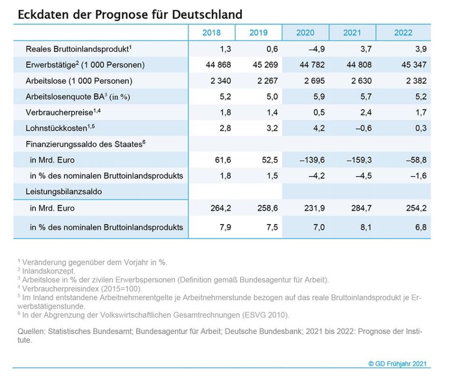 In ihrem Frühjahrsgutachten prognostizieren die führenden Wirtschaftsforschungsinstitute einen Anstieg des Bruttoinlandsproduktes um 3,7 Prozent im laufenden Jahr und um 3,9 Prozent im Jahr 2022. Der erneute Shutdown verzögert die wirtschaftliche Erholung, aber sobald die Infektionsgefahren vor allem durch das Impfen gebannt sein werden, wird eine kräftige Erholung einsetzen. Etwa zu Beginn des kommenden Jahres dürfte die Wirtschaft zur Normalauslastung zurückkehren.