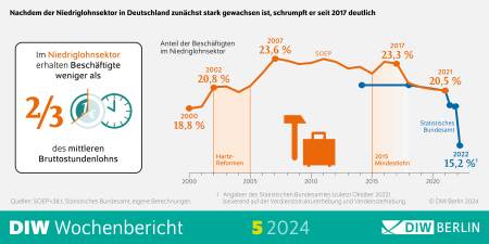 Nach starkem Zuwachs schrumpft der Niedriglohnsektor in Deutschland deutlich