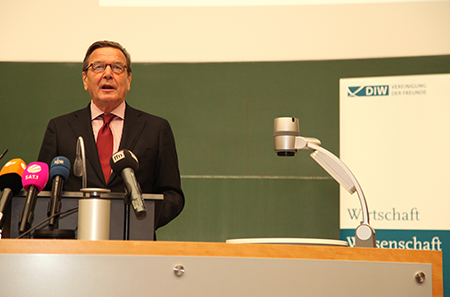 Ein Höhepunkt der Tagung war auch in diesem Jahr der traditionelle Mittagsempfang des DIW Berlin. Als Ehrengast hielt Bundeskanzler a.D. Gerhard Schröder einen Vortrag zum Thema "10 Jahre Agenda 2010". Gerhard Schröder zog dabei ein Fazit der Agenda 2010 und traf dabei auch auf seinen ehemaligen Weggefährten und politischen Rivalen Oskar Lafontaine, der sich unter den Zuschauern befand.